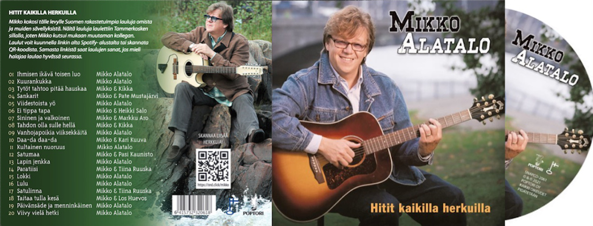 Mikko Alatalo kokosi Hitit kaikilla herkuilla -levylle Suomen rakastetuimpia lauluja omista ja muiden sävellyksistä. Näitä lauluja laulettiin paljon Tammerkosken sillalla, joten Mikko kutsui levylle mukaan muutaman kollegan. Laulut voit kuunnella linkin alta Spotify-alustalta tai skannata QR-koodista. Samasta linkistä saat laulujen sanat, jos mieli tekee laulaa hyvässä seurassa.